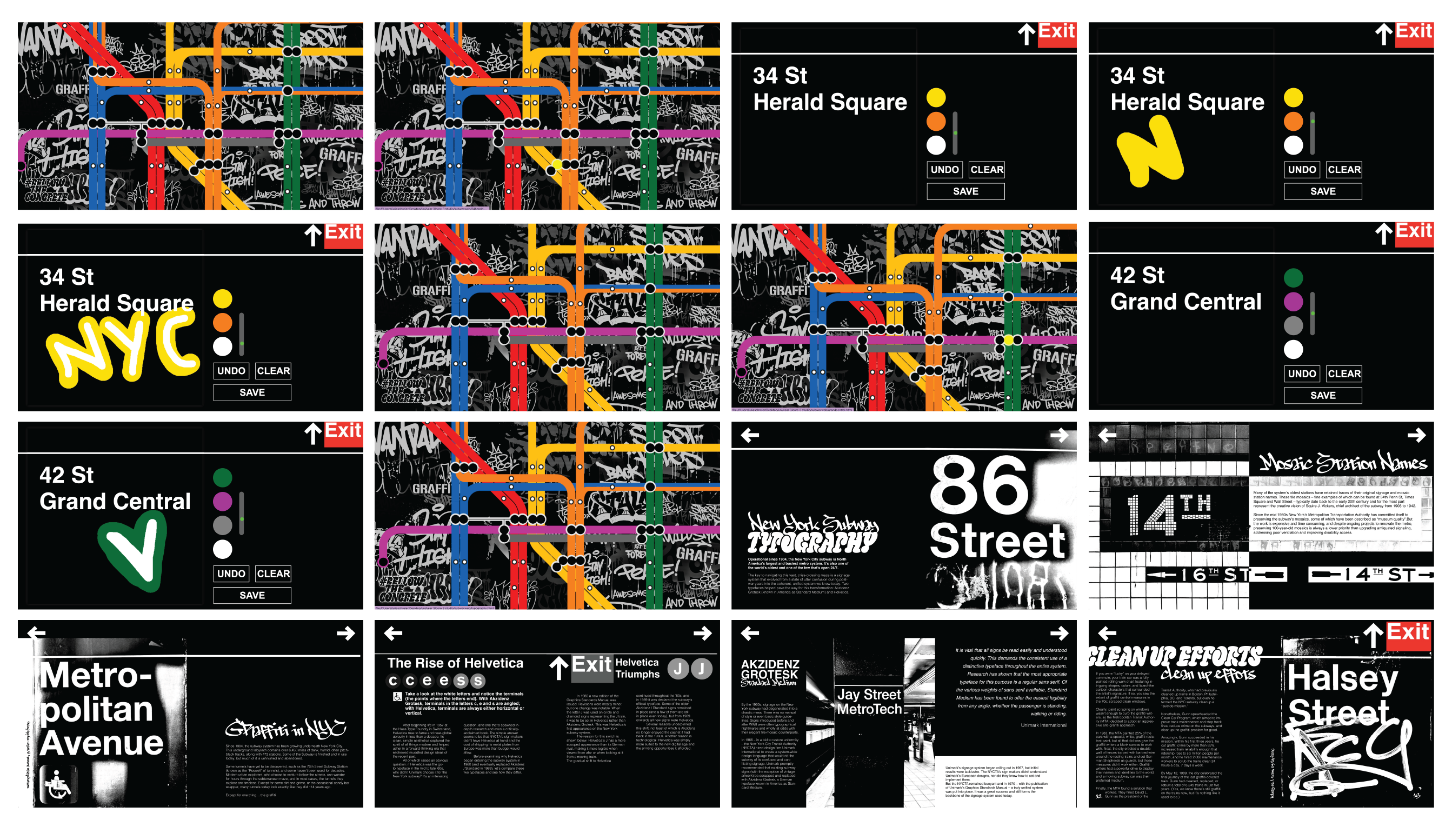 Using the possibilities of a digital platform, I created hundreds of unique, accessible pages, each offering a different starting point for expression. The project encourages users to create their own pieces using the subway as a canvas, celebrating art and self-expression in the city.